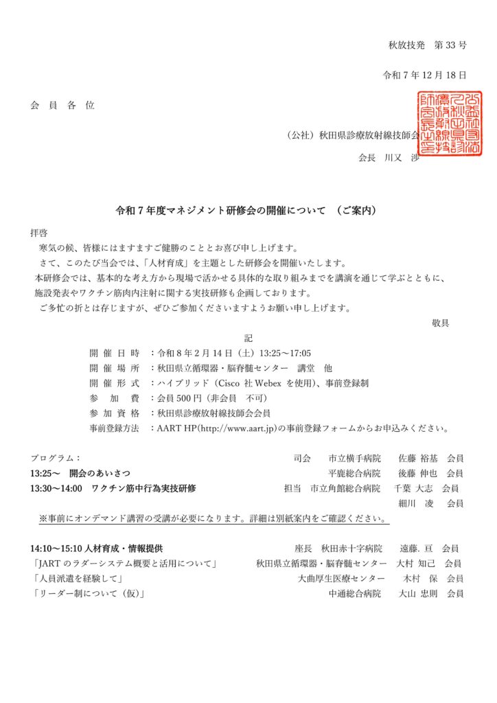 | 参加資格 | 秋田県診療放射線技師会会員 |